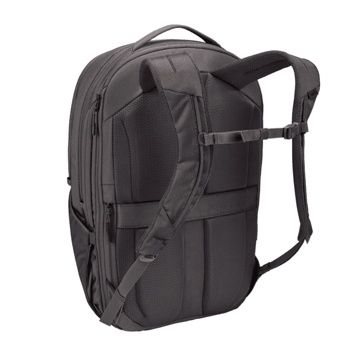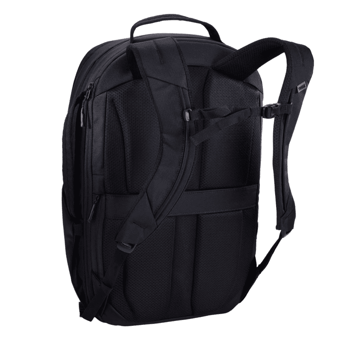 Padded air mesh back panel with airflow is ventilated and comfortable to carry, while sternum strap stabilizes the load