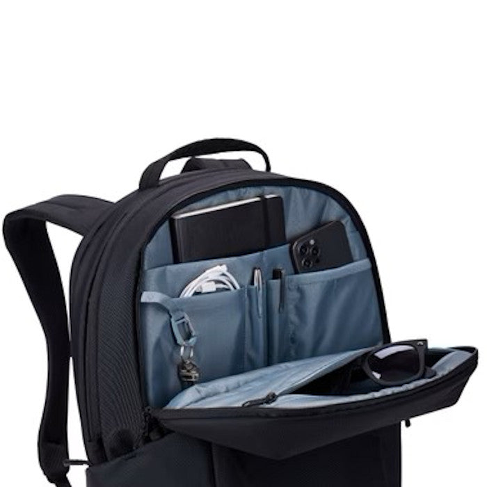 Interior organization panel keeps pens, cords, keys, and other essentials organized and secure