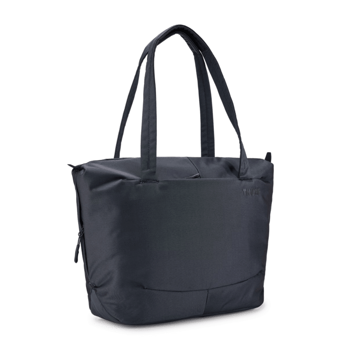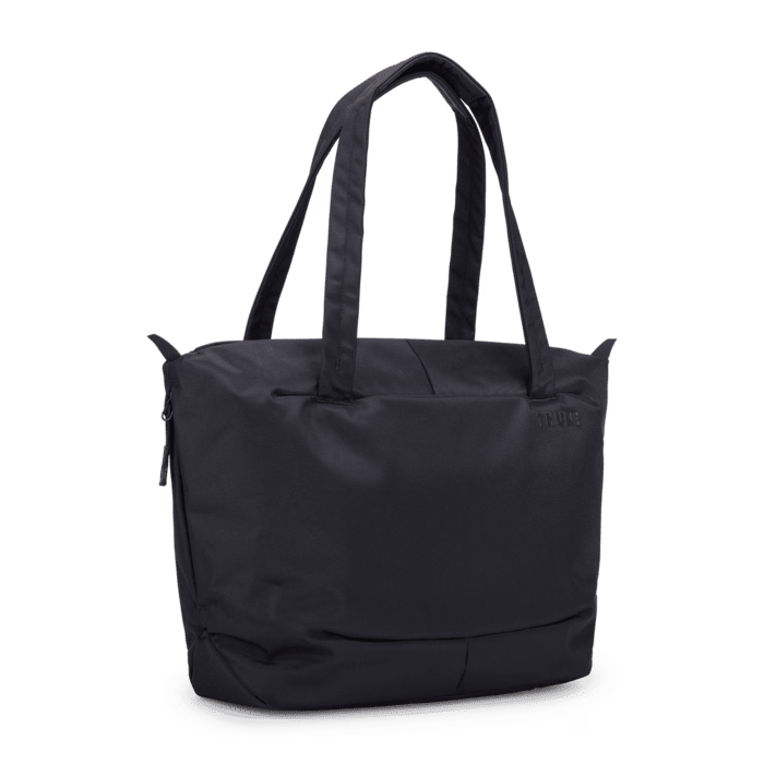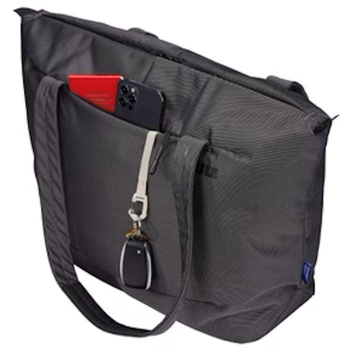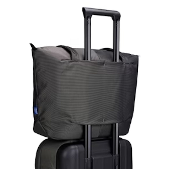 Thule Subterra 2 tote bag is sleek, modern and has thoughtful organization that allows you to pack a water bottle, laptop, tablet, and more. Whether you're heading into town, work, or a trip away, this tote bag has space for all the essentials. With the padded laptop and tablet sleeves, you can protect and organize your electronics. The zippered water bottle pocket lets you bring a water bottle while the pass-through panel means you can attach the tote to rolling luggage.