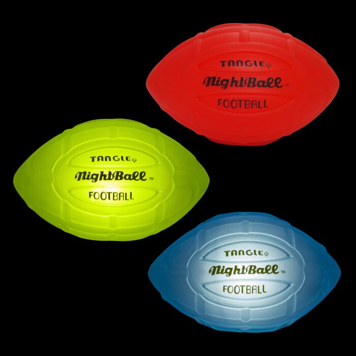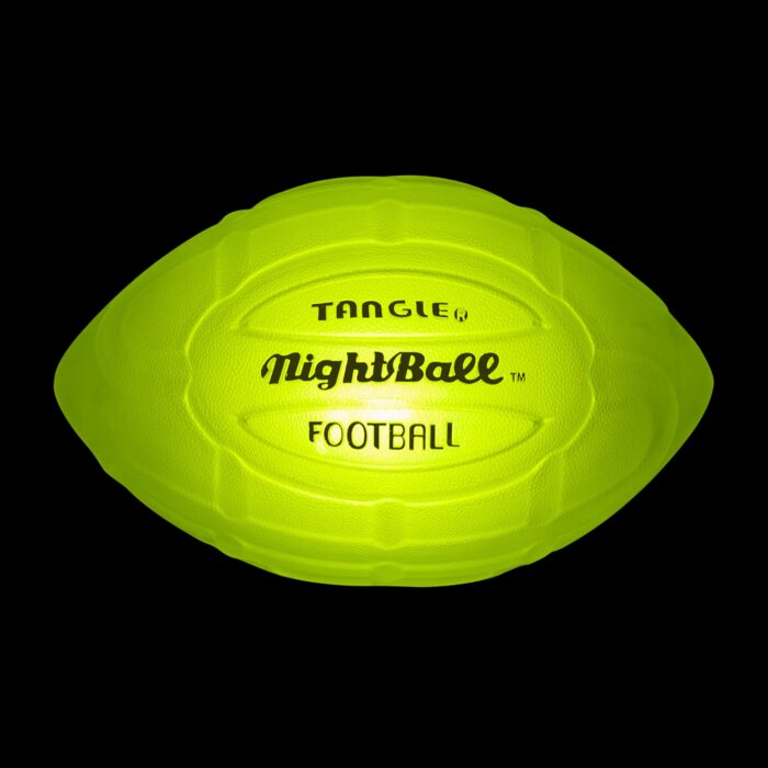 Tangle® Night Ball® Football has bright motion-activated LEDS which light-up each throw! Durable latex and BPA-free.