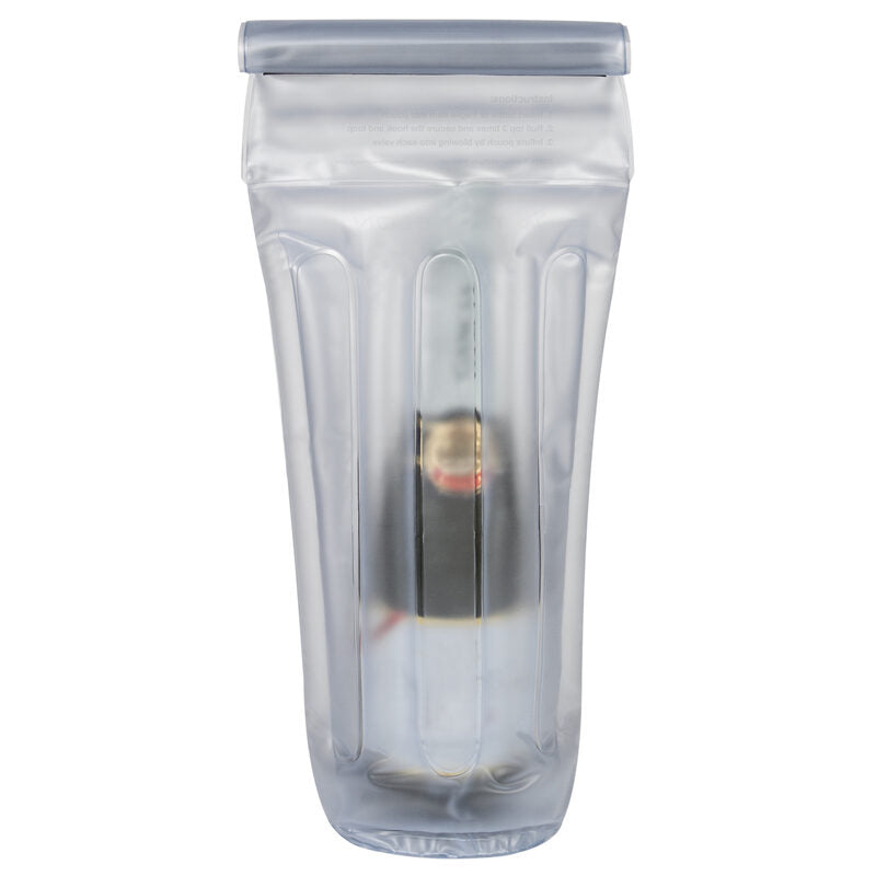 Inflatable Bottle Pouch by Travelon. Secure wine or spirits in this inflatable PVC pouch. It protects the glass from breakage while meeting TSA requirements for checked bags. See-through design makes inspection easy. Reusable. Clear.