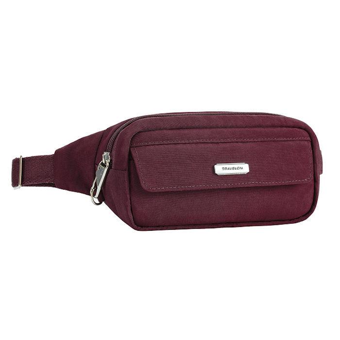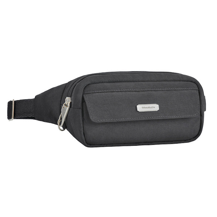 Travelon's 5-point anti-theft security system makes this lightweight, nylon waist pack inaccessible to thieves. Perfect for use daily or on vacation. Soft, adjustable waist strap fits most waists from 31" to 38" . 8 x 4 x 1.75 in. 8 oz.