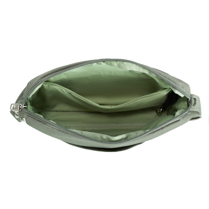 Travelon Roam East/West Crossbody features a patented 5-Point Anti-Theft security system that puts your mind at ease so your hands remain free. Moss.