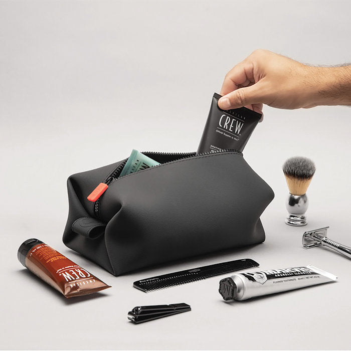 Sometimes, an entire grooming arsenal is needed, other times call for just the essentials. Handsome travel kits balance style with functionality. Made of leak-resistant, antibacterial silicone that easily wipes clean. Charcoal. This is the full size Koby Dopp Kit. 10 x 6 x 6 in.