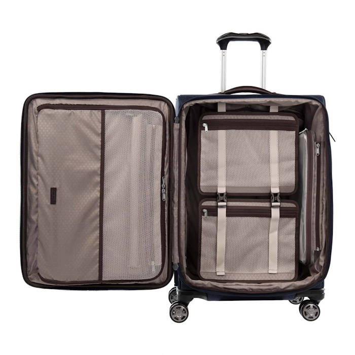25" Expandable spinner. Upgrade to a premium travel experience with thoughtful innovation and sophisticated styling. Spinners include the Contour Grip, PowerScope Handle and MagnaTrac® spinner wheels, for precise control and an effortless roll. Made in high density nylon with DuraGuard® for stain and abrasion resistance, plus leather accents. Grey or Black