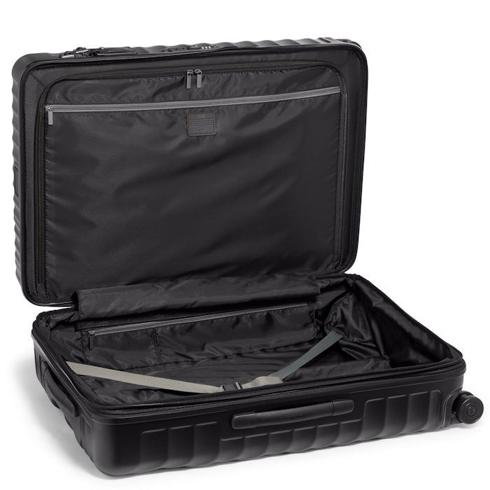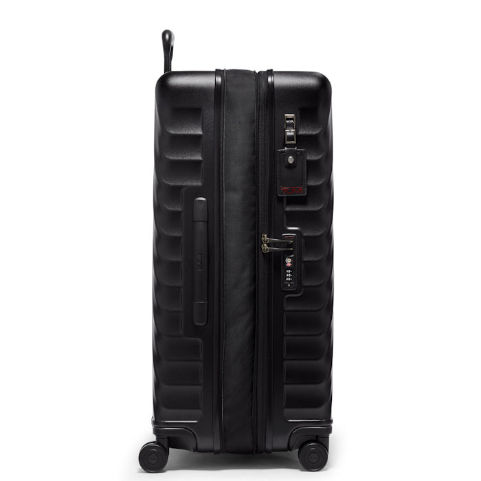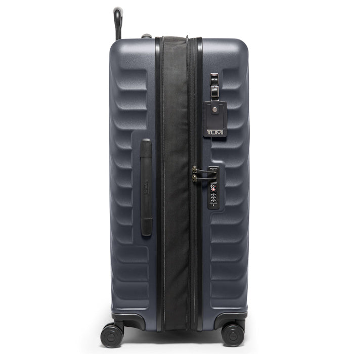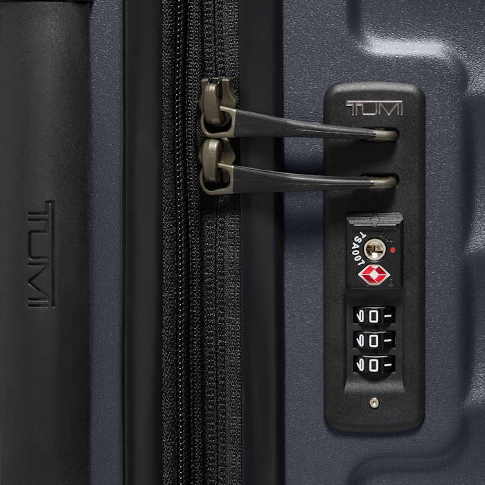- Zip entry to main compartment with security zipper, 3-stage telescoping handle, 4 recessed dual spinner wheels, Zipper expansion (up to 2" or 5 cm), Retractable top and side grab handles, Integrated TSA lock, Luggage tag, TUMI Tracer®, Anti-microbial treated shell and zippers and grab handles.