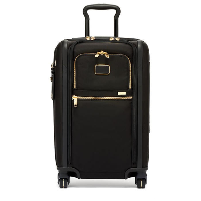 - Front-lid or split-case zip entry to main compartment (both with security zippers), Front U-zip pocket, Gusseted front straight-zip pocket, Zipper to zipper expansion (up to 2" or 5 cm), Retractable top and side grab handles, Bottom grab handle, 3-stage telescoping handle, 4 dual spinner wheels, Molded impact-resistant side panels, Protective bumper rails, Built-in USB port (interior cable to plug into power bank included, power bank and external cable not included); can be removed if necessary for customs, Built-in TSA combination lock, TUMI Tracer®