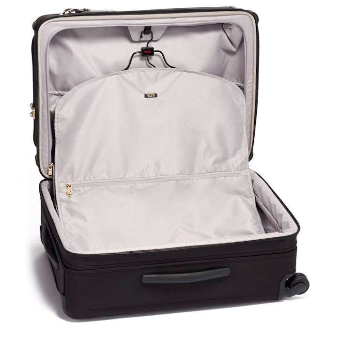This versatile 4-wheeled suitcase with a multi-level, expandable main compartment is ideal for flexible packing and features a removable garment sleeve and TUMI's easy-to-use Lever Lock™ Expansion System that allows for up to 2" (5 cm) of additional space. Handy interior and exterior pockets keep essentials in order and close at hand.