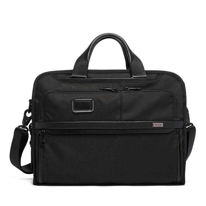 Ideal for your daily commute, this slim-profile brief optimizes both organization and comfort. The main compartment features a file divider perfect for documents, as well as a padded tablet pocket and multiple smaller pockets for your tech and business accessories.