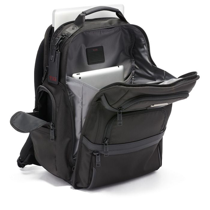 - Padded tablet pocket, 3 open pockets (one for files), Zip pocket, 3 media pockets, 3 card pockets, Pen loops, Key leash, TUMI Tracer®