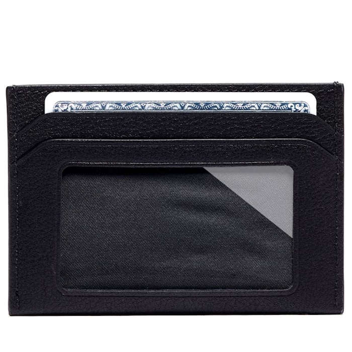 A slim piece you can easily tuck into your pocket, this card case is an excellent choice for those who prefer to travel light. It features card slots on each side, as well as an ID window and a subtle slip pocket for bills and receipts.