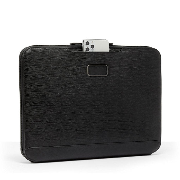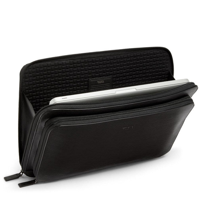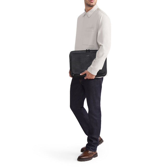 Thoughtfully designed to carry a 14” laptop with functional pockets for additional storage, this business portfolio meets laptop case is an elegant way to carry documents and tech on-the-go.