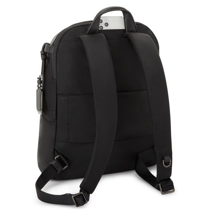 - Zip pocket; TUMI Tracer®; Water-resistant water bottle pocket; 2 media pockets; Open pocket; Loops; Leather card pocket; Leather pen loop; Key leash.