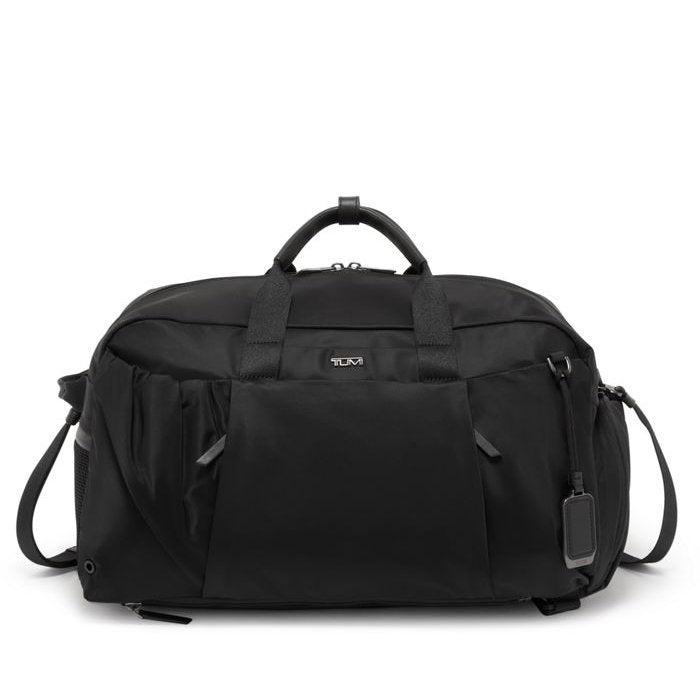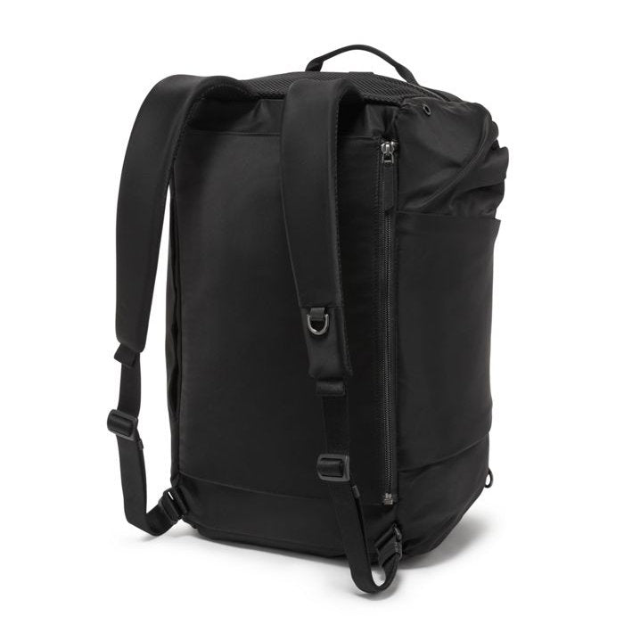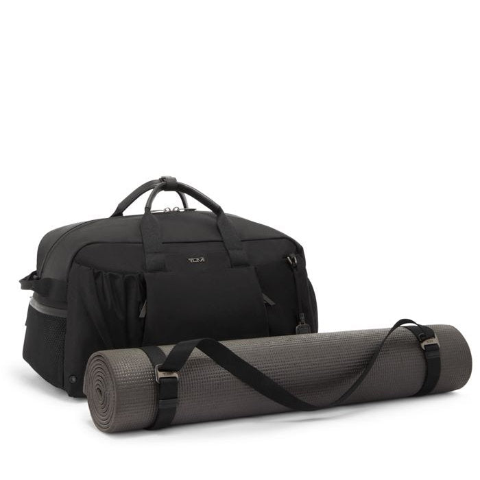 - Double-zip entry to main compartment; Quick-access phone pocket; Removable adjustable crossbody strap with G-hooks that can also be used to carry a yoga mat separately; Double-zip entry to side compartment with water-resistant lining; Front-zip pocket with dual-entry; Side mesh zip pocket; Back slip pocket with magnetic snap converts into Add-a-Bag sleeve; Bottom zip panel to hold backpack straps (when worn as a duffel); Adjustable strap with D-rings and speed clips to hold yoga mat; Double-zip entry to side compartment with water-resistant lining; Adjustable padded backpack straps.