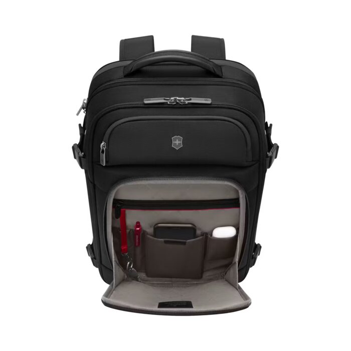 - Keep business laptop and tech accessories secure with bespoke business organization and anti-scratch lining.