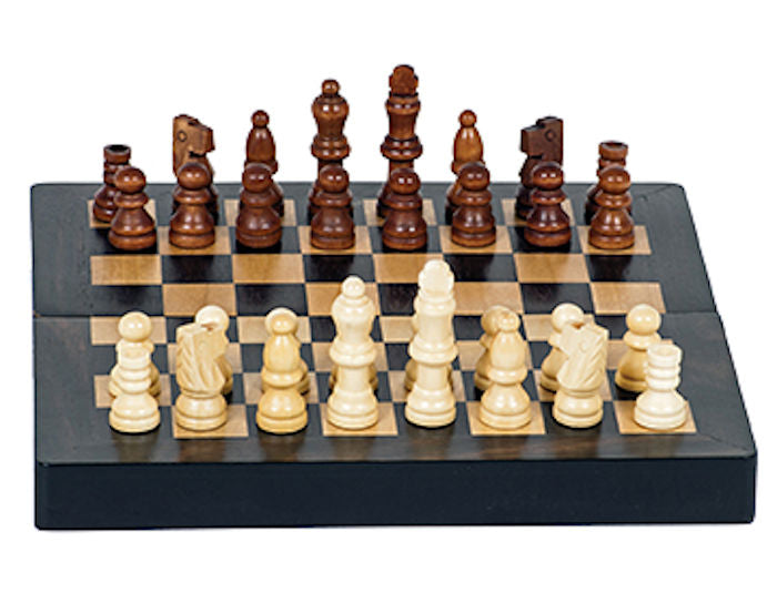 Think outside! This classic game can be played anywhere. Magnetic chessmen hold the game in play. Pieces store inside when folded shut.