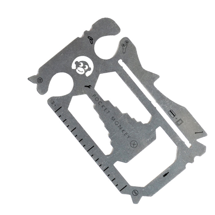 A new 21-in-one multi-tool that fits in a wallet or card case. TSA compliant for air travel. Stainless Steel. Made in the USA. 3.25 x 2 x 0.04 in.